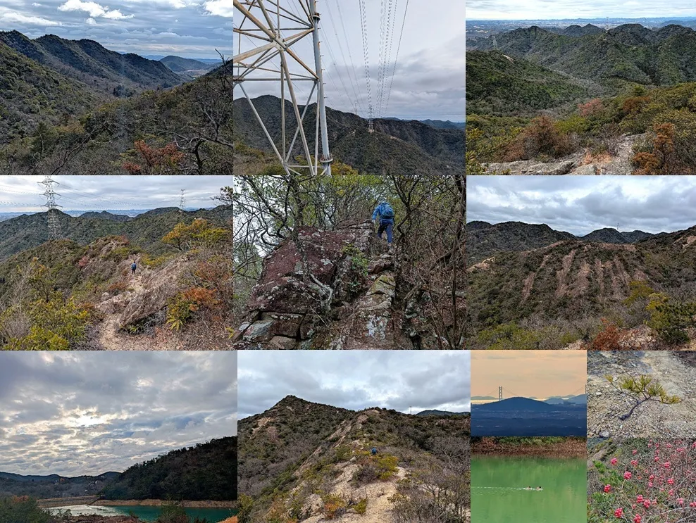 雪山に行きたし、と思えど今日から冬の大嵐の様相、どこかで助かったような心持ちがある。そう思いながらも強烈な風と氷点下の気温、お得感はほぼ無い。私有地結界の前まで来ると、ハイカー対策だと思われる「送迎バス転回場に付き駐車禁止」の看板が目に入った。この様な事は想定はしていた。渋々、オフィシャルな三草山駐車場に移動、こんな天候に拘らずハイカーは多い。ツーシーターの車から出て来られた男性二人。フロントのエンジンルームのトランクはツールボックス程度の大きさで、大したものの入る余地は無い。 改めて国道を渡り結界を越え、姿なき住民の皆様の気配を探して廻池まで歩く。雨がないので池の水位は低下、巨大な岩塊が透けている。覗き込んでも3m位から下は昏として見えず、怖くなって思わず辺りを見回した。海も怖いが池の怖さはまた格別だ。さて、踏み跡の増えたP298への岩尾根ルート、登ると同時に良くなる景色、岩尾根の狭間に降る谷の様子は、日本アルプスに比べられる景色だと思っている。ただし、背後の街並みを無視する技術は欠かせない。 辿り着いたP298には立派な踏み跡ができ、もはや登山道と言っても差し支えない。途を塞ぐ灌木は伐採されコシダは刈取られ、関係者様の努力の程が伺える。おっちゃん達、ありがとう。ここまで登ると汗も出る。風にも負けず、雪にも負けず、次のピークを目指して降る。目指すピークは加東アルプス槍ヶ岳、文字通り槍の如くに天に向って突き上げるピークだ。ここは前半でも厳しい区間で、ジオラマといえども応える地点、唯一のキレットなどを越え槍の天辺を目指す。 未だ余裕の残る状態で、次は関電鉄塔までの緩い区間、大坂山と周辺の尾根、そして数曽寺谷に降るあたりが見ものである。できれば廻谷方面も見て欲しいのだが、長い首の持主限定の景色である。鉄塔から峠までは100m余りの降り道、滑り易いルートを降ると古い碑に気が付いた。苔と風化で読み辛く、はて、何が書いてあるのかな、と座り込むところへ顔が出てきて心臓が飛び出た。お若い男性であった。あ〜驚いた。ここは3回目だが、人と会うのは初めてだと云う。少々話込んでお先に大坂山への登り返し。 先ずは大坂山バットレス、風は強くて雪の舞う岩場の斜面、廻谷の向こうに凄い岩尾根が見えている。若者が追いついて来て、先に行った。バットレスを過ぎても緩む事の無い斜度の300m、残る余裕を瞬く間に消費し、立ったままでの小休止。岩のテラスから見る谷の様子が素晴らしい。上り詰めた大坂山ピークに漂う美味しそうな匂いのもとは、先行者の啜るカレーラーメンであった。そこへ登って来られた男性二人、あのツーシーターのお二人だ。補給をしたいのは同様だがここは冷える。前衛の岩陰は暖かった過去がある。 今日の風には心遣いが足りない。辿り着いた岩影にも冷たい風が抜ける。更に降った中尾根の根元で休息とエネルギー補給、今日は中尾根を降ろう。一見すると恐ろしげな尾根だが、案外に優しいところもある。先の二人が馬の背を降って行った。あとは谷に降って駐車場へ帰るのみ。で、降った谷が何やら騒々しい。余すところ無く掘り返され、出来た小穴はなんであろう。猪の団地にしては、そもそも姿が無い。林床は今も残るどんぐりが多数、食料に窮する事はありそうに無い。 兎に角、凄い数の穴を掘ったのは猪で、察するところ、どんぐりに食傷気味の彼らは動物性タンパク質を欲していた、と言う事だ。有り余るどんぐりは、恐らくその一部をどんぐり酒として発酵させ、月夜の晩には、持ち寄った動物性タンパク質を肴に、豪勢な酒宴を催した。猪でさえ、食料に汲々とすることさえなければ、こうした文化文明の萌芽とも見える行動に出るのだ。数曽寺池に浮かぶカモに聞いたところ、「ぼくらは食料の無いこの池で体を休めるだけで、猪の宴は関係ありません。招かれても、この立派なコートが汚れるようなところへは行きませんよ」とプカプカ、風に吹かれて漂うのであった。